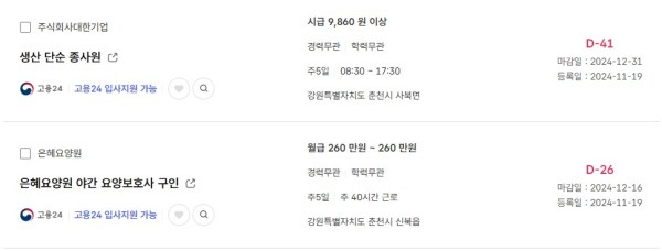 2024.11.20 워크넷 채용정보 페이지 정보 작성자 정보에디터 작성일 2024.11.20 13:46 3,430 조회 글버튼 수정하기 삭제하기 목록 답변 쓰기 본문 2024.11.20 워크넷에서 가져온 취업정보입니다. 하단의 링크는 워크넷으로 연결됩니다 ▼▼▼ SNS 공유 신고 차단 링크 https://www.work24.go.kr/wk/a/b/1200/retriveDtlEmpSrchList.do?basicSetupYn=&careerTo=&keywordJobCd=&occupation=&seqNo=&cloDateEndtParam=&payGbn=&templateInfo=&rot2WorkYn=&shsyWorkSecd=&srcKeywordParam=&resultCnt=10&keywordJobCont=N&cert=&moreButtonYn=&minPay=&codeDepth2Info=11000¤tPageNo=3&eventNo=&mode=&major=&resrDutyExcYn=&eodwYn=&sortField=DATE&staArea=&sortOrderBy=DESC&keyword=&termSearchGbn=&carrEssYns=&benefitSrchAndOr=O&disableEmpHopeGbn=&actServExcYn=&keywordStaAreaNm=N&maxPay=®ionParam=51110&emailApplyYn=&codeDepth1Info=11000&keywordEtcYn=®DateStdtParam=&publDutyExcYn=&keywordJobCdSeqNo=&viewType=&exJobsCd=&templateDepthNmInfo=®ion=51110&employGbn=&empTpGbcd=1&computerPreferential=&infaYn=&cloDateStdtParam=&siteClcd=all&searchMode=Y&birthFromYY=&indArea=&careerTypes=&subEmpHopeYn=&tlmgYn=&academicGbn=&templateDepthNoInfo=&foriegn=&entryRoute=&mealOfferClcd=&basicSetupYnChk=&station=&holidayGbn=&srcKeyword=&academicGbnoEdu=noEdu&enterPriseGbn=all&cloTermSearchGb 1222 회 연결 이전글 다음글 글버튼 수정하기 삭제하기 목록 답변 쓰기