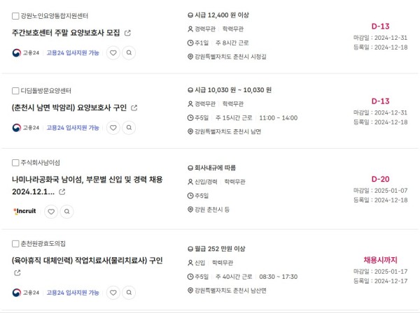 2024.12.18 워크넷 채용정보 페이지 정보 작성자 정보에디터 작성일 2024.12.18 13:19 3,611 조회 글버튼 수정하기 삭제하기 목록 답변 쓰기 본문 2024.12.18 워크넷에서 가져온 취업정보입니다. 하단의 링크는 워크넷으로 연결됩니다 ▼▼▼ SNS 공유 신고 차단 링크 https://www.work24.go.kr/wk/a/b/1200/retriveDtlEmpSrchList.do?basicSetupYn=&careerTo=&keywordJobCd=&occupation=&seqNo=&cloDateEndtParam=&payGbn=&templateInfo=&rot2WorkYn=&shsyWorkSecd=&resultCnt=10&keywordJobCont=N&cert=&moreButtonYn=&minPay=&codeDepth2Info=11000¤tPageNo=3&eventNo=&mode=&major=&resrDutyExcYn=&eodwYn=&sortField=DATE&staArea=&sortOrderBy=DESC&keyword=&termSearchGbn=&carrEssYns=&benefitSrchAndOr=O&disableEmpHopeGbn=&actServExcYn=&keywordStaAreaNm=N&maxPay=®ionParam=51110&emailApplyYn=&codeDepth1Info=11000&keywordEtcYn=®DateStdtParam=&publDutyExcYn=&keywordJobCdSeqNo=&viewType=&exJobsCd=&templateDepthNmInfo=®ion=51110&employGbn=&empTpGbcd=1&computerPreferential=&infaYn=&cloDateStdtParam=&siteClcd=all&searchMode=Y&birthFromYY=&indArea=&careerTypes=&subEmpHopeYn=&tlmgYn=&academicGbn=&templateDepthNoInfo=&foriegn=&entryRoute=&mealOfferClcd=&basicSetupYnChk=&station=&holidayGbn=&srcKeyword=&academicGbnoEdu=noEdu&enterPriseGbn=all&cloTermSearchGbn=&birthToYY=&key 1349 회 연결 이전글 다음글 글버튼 수정하기 삭제하기 목록 답변 쓰기