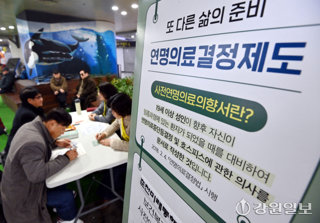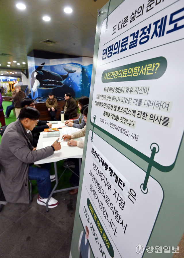 보건복지부 국립연명의료관리기관과 춘천미래동행재단(이사장:신용준)은 11일 춘천 명동 지하상가에서 시민들을 대상으로 연명의료결정제도 홍보 켐페인을 진행했다. 임도혁기자