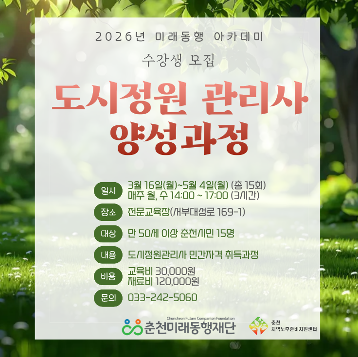 2026년 춘천미래동행재단 직원(9급, 계약직) 채용 최종 합격자 공고